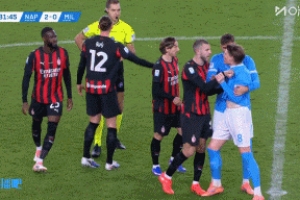 體育資訊12月19日訊 意大利超級(jí)杯半決賽,那不勒斯對(duì)陣米蘭。82分鐘,麥克托米奈爭(zhēng)搶被吹犯規(guī),隨后繼續(xù)帶球,托莫里大腳踢飛皮球撞到麥克托米奈,兩人發(fā)生爭(zhēng)執(zhí)。最后,兩人均吃到黃牌。