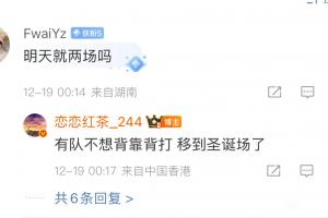 體育資訊12月19日訊 昨日德杯第二賽段分組及賽程出爐,后續(xù)爆料人“戀戀紅茶”透露稱:有隊(duì)不想背靠背打,移到圣誕場(chǎng)了!
