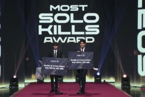 體育資訊12月19日訊 HLE上單Zeus獲得單殺王獎(jiǎng)項(xiàng),Gumayusi代領(lǐng)獎(jiǎng):