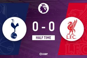 上半場傷停補(bǔ)時3分鐘,半場結(jié)束,利物浦暫0-0熱刺。