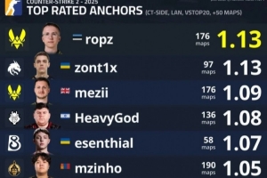體育資訊12月21日訊 根據(jù)由statsmeister1與NER0cs基于HLTV數(shù)據(jù)聯(lián)合發(fā)布的“COUNTER-STRIKE 2 - 2025”賽季綜合統(tǒng)計(jì),在嚴(yán)格限定為 CT方(防守方)、線下賽事(LAN)、對(duì)陣世界排名前20戰(zhàn)隊(duì)、且出場(chǎng)地圖數(shù)超過50張 的 頂級(jí)主防者(TOP RATED ANCHORS) 評(píng)分榜單中,選手 ropz 以 1.13 的評(píng)分位列榜首;