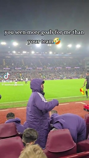 下半場在替補席上,B費遭到場邊維拉球迷的嘲諷,他笑著站起來與維拉球迷“互動”。