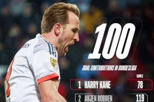 拜仁官方社媒曬出德甲聯(lián)賽中達(dá)成參與100球所需場(chǎng)次榜單,其中凱恩78場(chǎng)居首。
