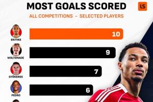 體育資訊12月23日訊 上周末英超第17輪比賽結束,英國媒體LiverScore列出了本賽季英超部分新援前鋒的進球數(shù),?;倏舜蛉?0球排名第一。