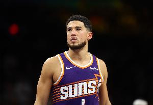 上半場布克出戰(zhàn)17分鐘,9投5中,三分1中0,罰球4中3砍下13分5助攻2搶斷,也有4次失誤。