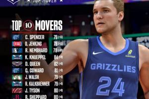 2K能力值漲幅Top10:斯潘塞&詹金斯+11 奎因&克尼佩爾+9 謝潑德+8