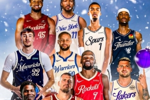 明天上午,五場圣誕大戰(zhàn)將先后開打,分別是騎士-尼克斯、馬刺-雷霆、獨行俠-勇士、火箭-湖人、森林狼-掘金。