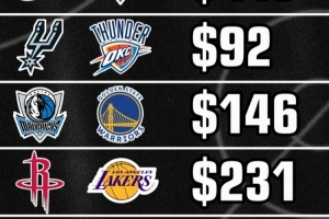 體育資訊12月25日訊 今日美媒Buckets統(tǒng)計了明天5場圣誕大戰(zhàn)的最低票價,具體如下: