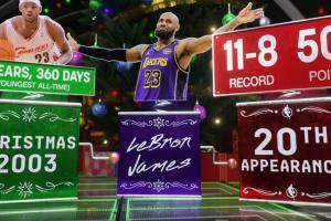 轉(zhuǎn)播方ESPN曬出數(shù)據(jù):詹姆斯2003年參加圣誕大戰(zhàn)時18歲360天,歷史最年輕。