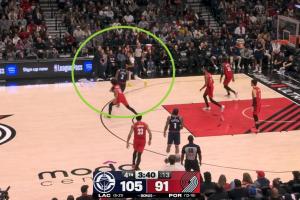 GIF-暫停后,小卡被斷,開(kāi)拓者快攻兩分打進(jìn)