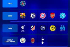 體育資訊12月28日訊 2025年即將結(jié)束,德轉(zhuǎn)發(fā)布了一張他們對各家歐洲豪門今年表現(xiàn)的評級,巴黎唯一“頂級”,皇馬、曼聯(lián)尤文“拉完了”。