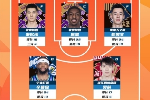 2025-2026賽季CBA聯賽常規(guī)賽第7輪結束較量,來自北京控股籃球俱樂部的朱松瑋和佩里,南京同曦籃球俱樂的郭昊文,寧波富邦町渥男籃的辛普森和浙江稠州籃球俱樂部的吳前入選CBA聯賽常規(guī)賽第7輪最佳陣容!
