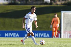 “我參加了一個(gè)在日本舉辦的皇馬基金會(huì)訓(xùn)練營(yíng),大約有400名孩子參加,他們選出的最有價(jià)值球員(MVP)有機(jī)會(huì)去皇馬青訓(xùn)試訓(xùn),加入Alevín B隊(duì)。我在那個(gè)訓(xùn)練營(yíng)中成功當(dāng)選MVP,因此有機(jī)會(huì)去巴爾德貝巴斯試訓(xùn)。那時(shí)我大概九歲,我父親被告知我只有0.01%的可能被簽下,但考慮到這是一次很好的經(jīng)歷,我父母決定讓我去試試。我在那里訓(xùn)練了一周半到兩周的時(shí)間,很幸運(yùn)能和非常出色的隊(duì)友們以及像何塞·曼努埃爾·拉拉這樣的好教練一起訓(xùn)練。在一場(chǎng)對(duì)陣比我大一歲孩子的友誼賽中,我被安排踢前鋒,并且進(jìn)了一球。那場(chǎng)比賽我表現(xiàn)得非常好,兩周試訓(xùn)結(jié)束后,皇馬決定與我簽約。”