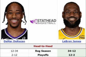 據(jù)統(tǒng)計(jì),詹姆斯常規(guī)賽生涯面對德羅贊戰(zhàn)績來到35勝12負(fù),季后賽為12勝2負(fù)。