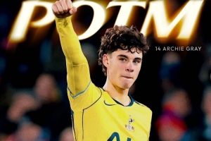 阿奇·格雷斬獲職業(yè)生涯一線隊(duì)首粒進(jìn)球,熱刺官方宣布,經(jīng)過球迷的投票,他當(dāng)選本場比賽隊(duì)內(nèi)最佳球員。