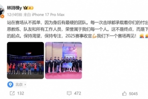 林詩棟在個人微博寫道:站在賽場從不孤單,因為身后有最硬的團隊。每一次擊球都承載著你們的付出。感恩教練、隊友和所有工作人員,榮譽屬于我們每一個人。這不是終點,而是下一程的起點。保持渴望,保持專注,2025賽事收官,我們下一個賽場再見!