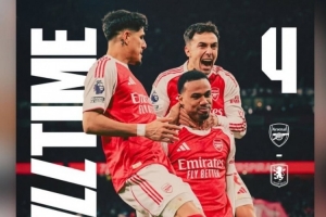 體育資訊12月31日訊 英超第19輪比賽,阿森納主場4-1擊敗維拉。