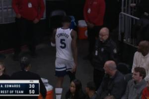 森林狼80-109落后,華子走回更衣室
