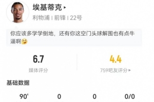 體育資訊1月2日訊 利物浦在本輪英超0-0戰(zhàn)平利茲聯(lián),?;倏吮緢鰯?shù)據(jù)如下: