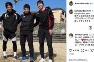 體育資訊1月2日訊 日本國(guó)腳鐮田大地更新社媒,曬出自己在元旦和兩名老將香川真司、長(zhǎng)友佑都一同在海邊訓(xùn)練的照片。