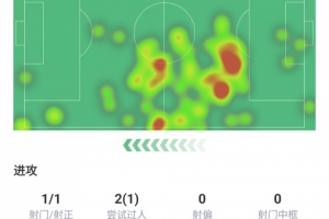 射門1次、射正1次、嘗試過人2次成功1次、丟失球權15次