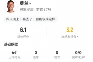 體育資訊1月4日訊 巴薩在本輪西甲對(duì)陣西班牙人,費(fèi)蘭本場(chǎng)數(shù)據(jù)如下: