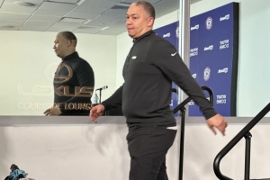 體育資訊記者今日前往現(xiàn)場跟進了快船主場115-146慘敗凱爾特人的比賽,并在賽后參加新聞發(fā)布會??齑鹘叹毺﹤悺けR接受了采訪,小吧整理了他的部分采訪內容。