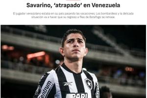 報(bào)道稱,薩瓦里諾此前正在他的家鄉(xiāng)度假,由于國內(nèi)遭轟炸等一系列事件,委內(nèi)瑞拉已進(jìn)入緊急狀態(tài),該球員不得不留在該國,無法按時(shí)返回博塔弗戈進(jìn)行訓(xùn)練。