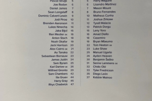 后衛(wèi):達(dá)洛特、馬茲拉維、德里赫特、馬奎爾、利桑德羅、馬拉西亞、多爾古、約羅、盧克-肖、海文、泰勒·弗雷德克森、迭戈·萊昂