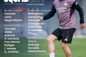 體育資訊1月4日訊 北京時(shí)間1月4日23:15,西甲第18輪,皇馬對陣貝蒂斯,皇馬公布本場名單,卡瓦哈爾回歸,姆巴佩傷缺,馬斯坦托諾在列。