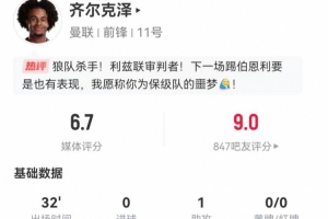 體育資訊1月4日訊 曼聯(lián)在本輪英超對陣?yán)澛?lián),齊爾克澤本場數(shù)據(jù)如下: