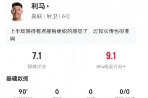 體育資訊1月4日訊 曼聯(lián)在本輪英超對(duì)陣?yán)澛?lián),利馬本場(chǎng)數(shù)據(jù)如下: