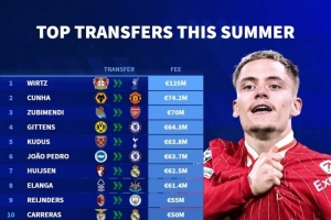 體育資訊7月16日訊 德國(guó)轉(zhuǎn)會(huì)市場(chǎng)統(tǒng)計(jì)了今夏球員的轉(zhuǎn)會(huì)費(fèi),并列出榜單,維爾茨1.25億歐居首,庫(kù)尼亞、祖比門(mén)迪二三位。