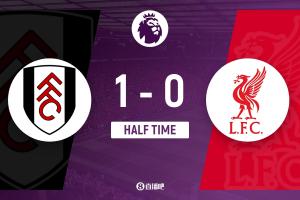 上半場比賽結(jié)束,富勒姆1-0利物浦。