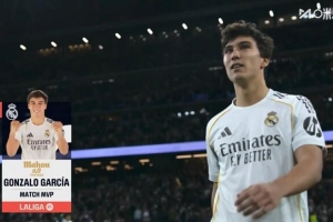 本場比賽貢薩洛上演帽子戲法,賽后他也當(dāng)選西甲官方評選出的本場最佳球員。