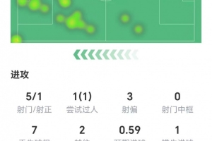 賽后技術統(tǒng)計數據顯示,加克波本場比賽5射1正,1次錯失進球,4次地面對抗3次成功,3次爭頂成功1次,獲評6.9分。