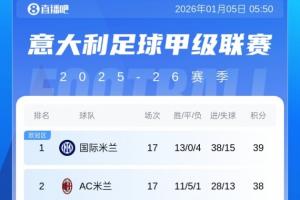 體育資訊01月05日訊 意甲第18輪的比賽已經(jīng)全部結(jié)束,最后一場(chǎng)國(guó)米3-1戰(zhàn)勝博洛尼亞。