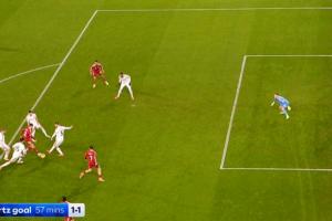 維爾茨第57分鐘破門(mén),邊裁示意越位,VAR介入后判罰進(jìn)球有效。