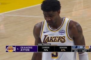 艾頓職業(yè)生涯罰球命中率為75%,但本賽季罰球命中率僅61%。