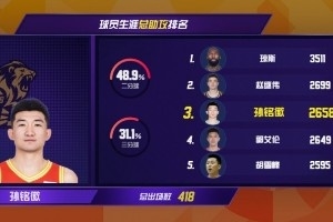 體育資訊1月5日訊 中籃聯(lián)發(fā)文,CBA聯(lián)賽第10輪一共有3名國(guó)內(nèi)球員送出11次助攻,孫銘徽更是躋身歷史助攻榜前三。原文如下: