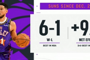 此役過后,太陽戰(zhàn)績(jī)更新為21勝14負(fù),繼續(xù)排在西部第7位。