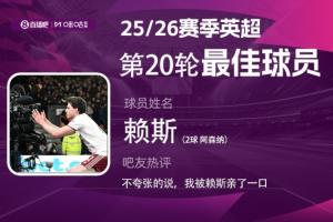 2025-2026賽季英超火熱進行中,體育資訊和咪咕體育聯(lián)合發(fā)起每輪英超最佳球員評選活動!第20輪評選結(jié)果已經(jīng)出爐,賴斯雙響幫助阿森納3-2力克伯恩茅斯、6分領(lǐng)跑,當(dāng)選本輪英超最佳!