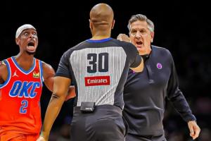 在那一瞬間之前,雷霆的戰(zhàn)績是25勝2負,在那之后,雷霆5勝5負(包括當場比賽),并且,在最近的9場比賽中,雷霆的場均罰球出手數(shù)排名聯(lián)盟倒數(shù)第五(總計則是排聯(lián)盟第18)!
