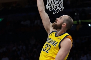 本場比賽,步行者中鋒赫夫發(fā)揮不錯,進攻端里突外投很高效,但最后時刻不在場上。