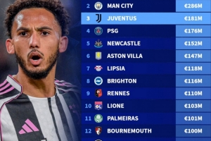 過(guò)去五個(gè)冬窗轉(zhuǎn)會(huì)投入排名:
