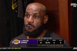 體育資訊1月7日訊 今日,湖人111-103客場擊敗鵜鶘,迎來三連勝。賽后,湖人前鋒詹姆斯接受了采訪。