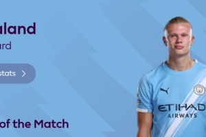 本場比賽哈蘭德點(diǎn)射破門,打破3場進(jìn)球荒,賽后他也當(dāng)選英超官方球迷票選全場最佳球員。