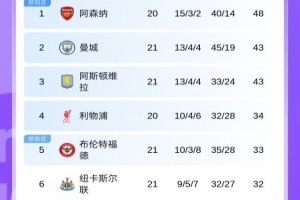 體育資訊1月8日訊 英超第21輪結(jié)束多場對陣,最新積分榜情況如上圖。