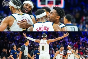 然后,掘金就用剩下來的9塊邊角料和主力盡出的76人磨到天荒地老,最終加時(shí)一分險(xiǎn)勝對(duì)手。