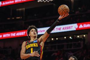 首節(jié)比賽,老鷹球員杰倫·約翰遜表現(xiàn)出色,進(jìn)攻端手感火熱,在9分鐘的時(shí)間里,投籃6中5,三分球1中0,罰球1中0,高效拿下10分1籃板1助攻的數(shù)據(jù),正負(fù)值+6。
